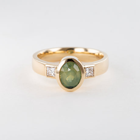Opalescent Moss Green Sapphire Memories Ring in Gold with Diamonds