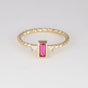 The Berry Pink Spinel weighs 0.25 carat, and measures approximately 3mm x 5mm, with two 1.7mm x 1.7mm princess cut lab diamonds either side. Purchase a single for a dainty look, or pair a few of our Tiny Treasure range to build your own customisable stack!