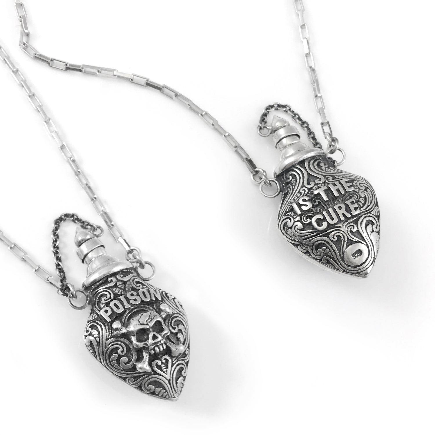 A deadly cute vial of silver poison, complete with removable dipper and a 75cm silver chain.