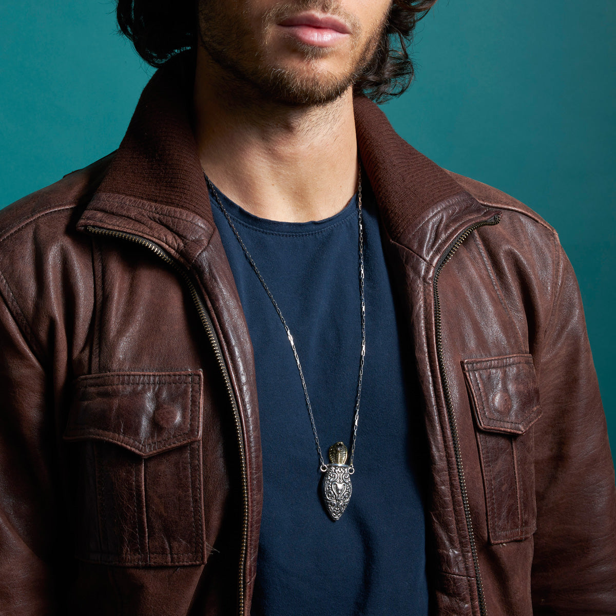 In celebration of our 15 year anniversary we are reviving this piece of the past; voted by you.. we welcome back our Snake Charmer Pendant. Featuring a golden brass Cobra whom, when charmed, rises up from its ornate sterling silver basket.